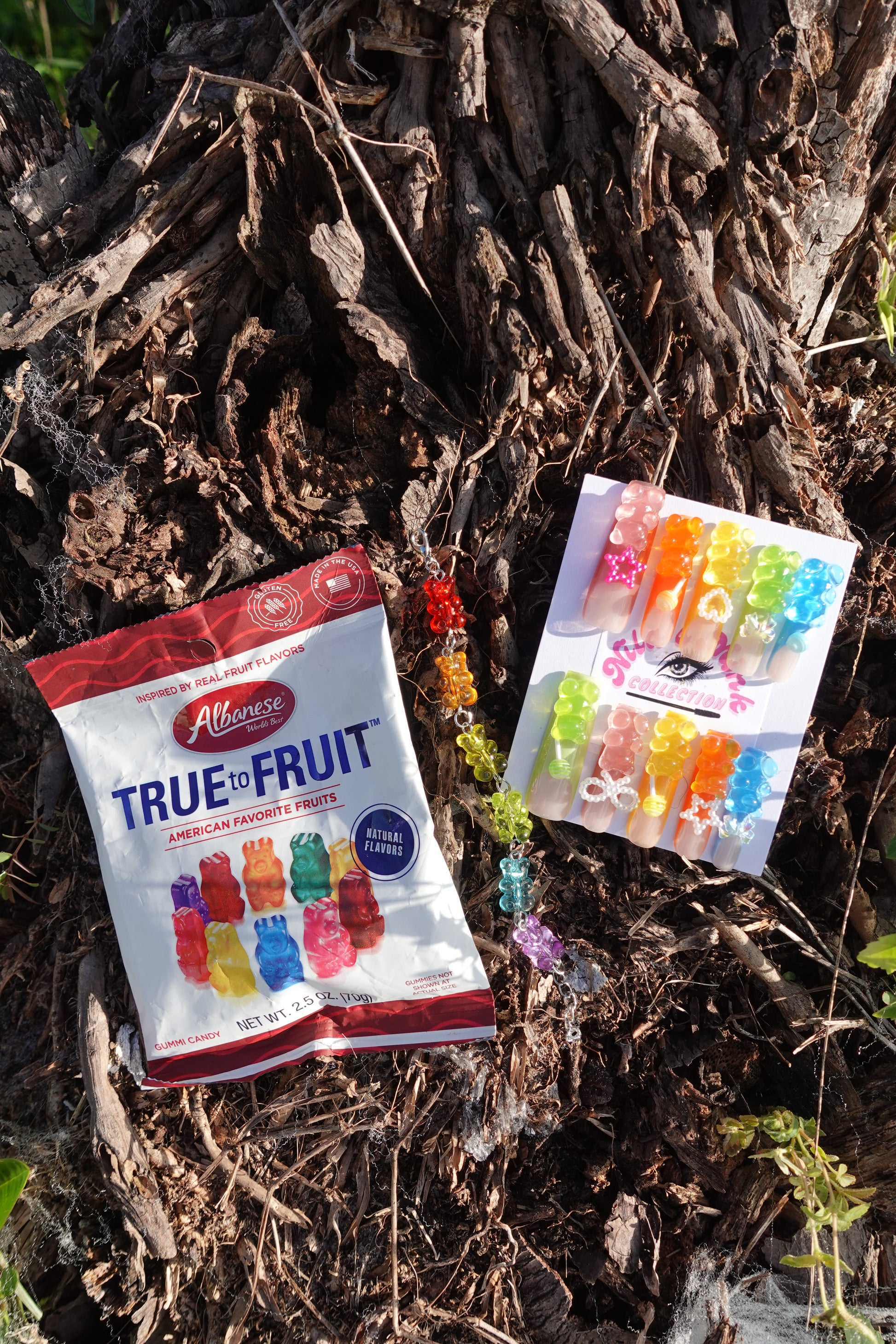 Gummy Bear Galore Press-On Nail Set | 3D Gummy Bears | Colorful Candy Nails | Fun Rainbow Press Ons (Free Gummies & Bracelet)