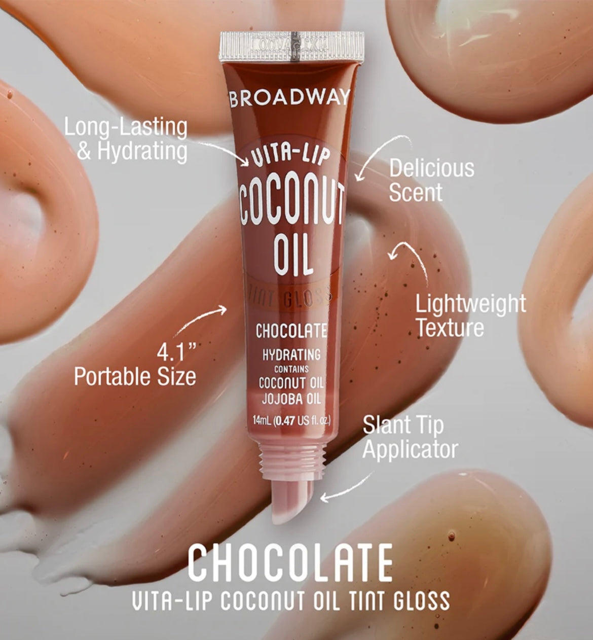 - Coconut Oil: Nude brown tinted glosses formulated with coconut and jojoba oil, with a light, delicious scent